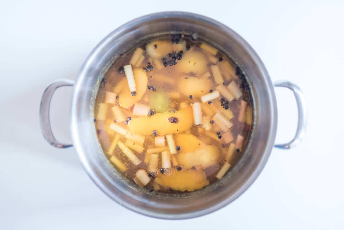 Anscheinend kann man diesen Prozess auch komplett kalt durchführen, das heißt: alles zusammen für ein paar Tage abgedeckt in den Kühlschrank stellen und manchmal umrühren. Angeblich wird der Geschmack dadurch noch intensiver. Ich habe das nicht ausprobiert, weil ich mit der warmen Variante geschmacklich voll und ganz zufrieden war.